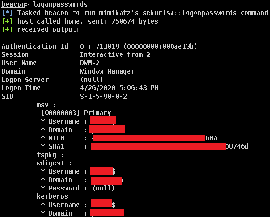 虽然是没抓到明文密码,但是有NTLM,可用利用Pass The Hash横向移动。由于CS的横向移动是直接传后门的,后面知道域内主机全都有杀软,打完之后全都没上线。