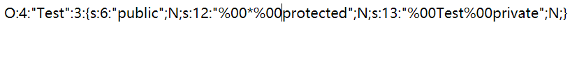 下列代码将序列化后的00字符替换为url编码,就可以很直观的看到它的位置。protected修饰符的格式为:%00*%00属性名,private修饰符的格式为:%00类名%00属性名,public修饰符则直接为属性名。