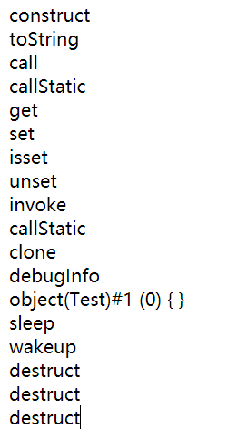 | __sleep | 使用serialize时触发 ,在对象被序列化前自动调用,该函数需要返回以类成员变量名作为元素的数组(该数组里的元素会影响类成员变量是否被序列化。只有出现在该数组元素里的类成员变量才会被序列化) |