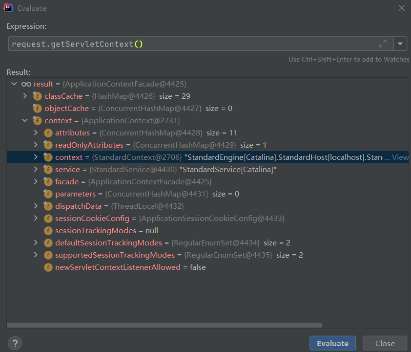 与内存马相关的两种上下文是ApplicationContext和StandardContext。ApplicationContext是实现ServletContext的类,记录的是Servlet的一些上下文信息,而StandardContext记录的是包括web.xml在内的一些Web应用信息。