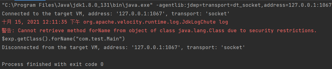 用前面的Demo加上runtime.introspector.uberspect属性,使用之前模板注入的payload进行测试,会抛出一句告警。