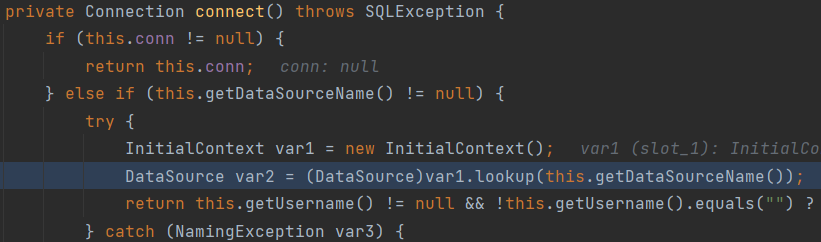 调用栈很简单,在setAutoCommit方法调用connnet方法,而connnet方法又使用我们设置的JNDI字符串调用lookup方法,加载恶意的工厂类导致命令执行。当然也因为是JNDI的利用方式,在一些低版本JDK环境下才能利用成功。