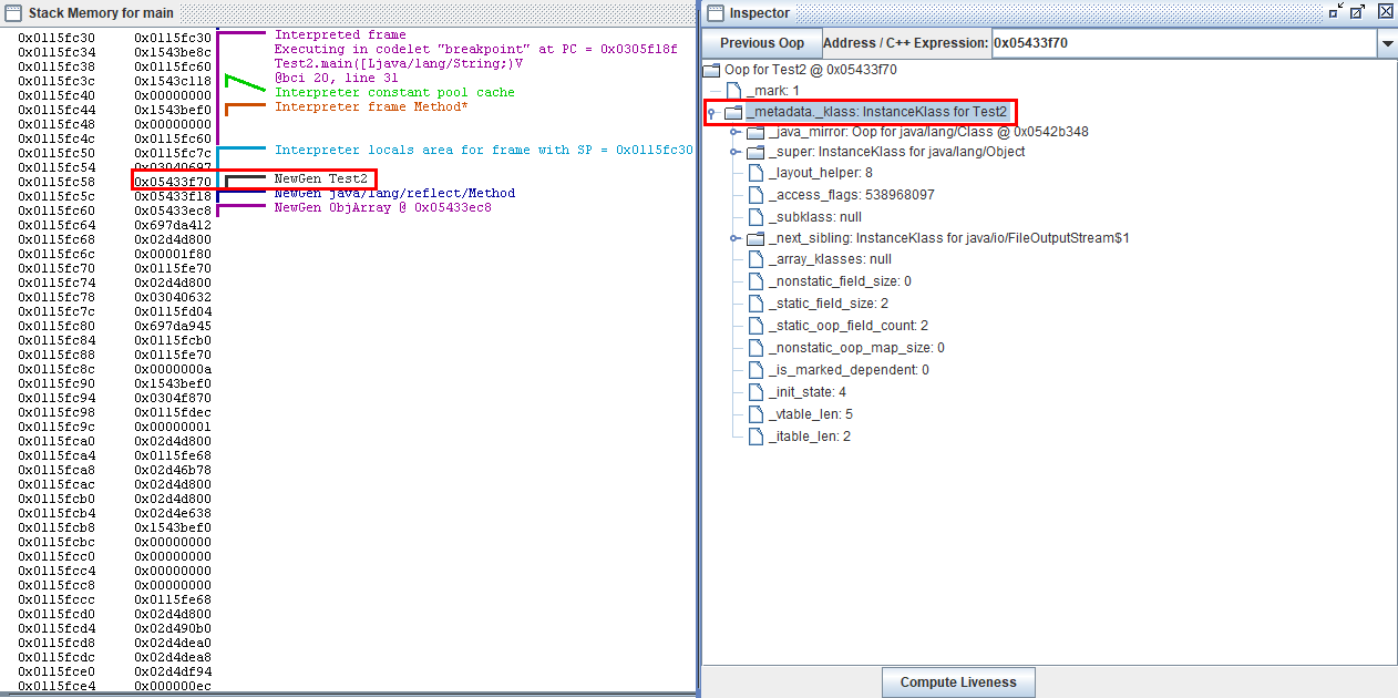 在Java程序运行过程中,每创建一个新的对象,在JVM内部就会相应地创建一个对应类型的OOP对象。Java类是对象,Java方法也是对象,而Java类加载完成时在JVM中的最终产物就是InstanceKlass,其中包含方法信息、字段信息等一切java 类所定义的一切元素。
